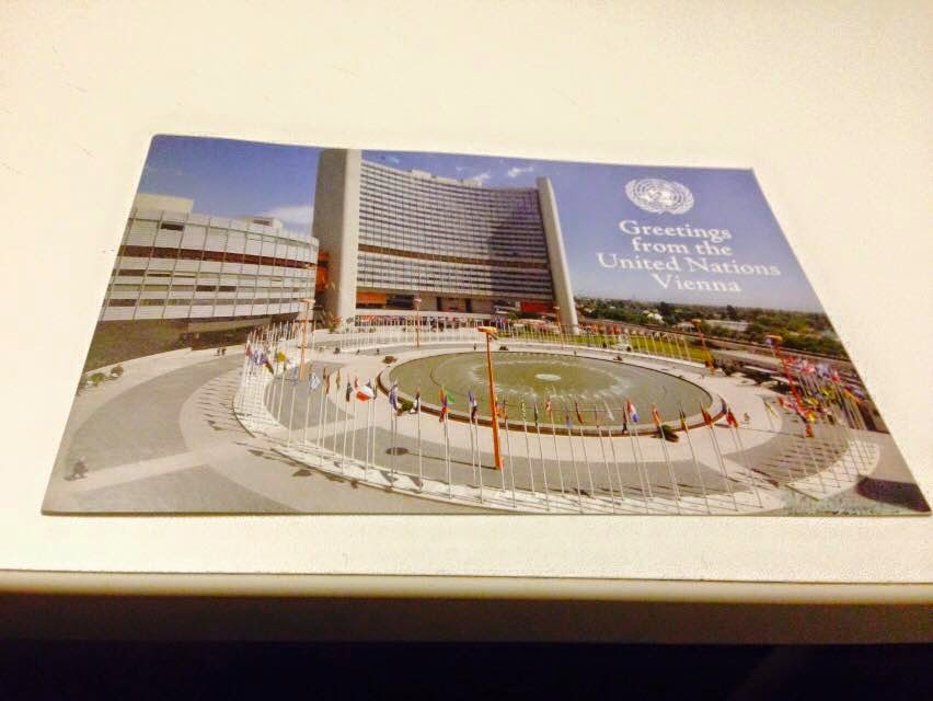 Oggi ho ricevuto la una cartolina dalla sede ONU (UN) di Vienna che completa la mia personale collezione aggiungendosi a New York e Vienna